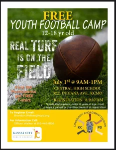 This Saturday, there will be a free youth football camp happening at Central High School in KCMO for kids 12-18 years old. I spoke with KCPD Officer Brandon Walker about this event with and all the info you need so check it out!