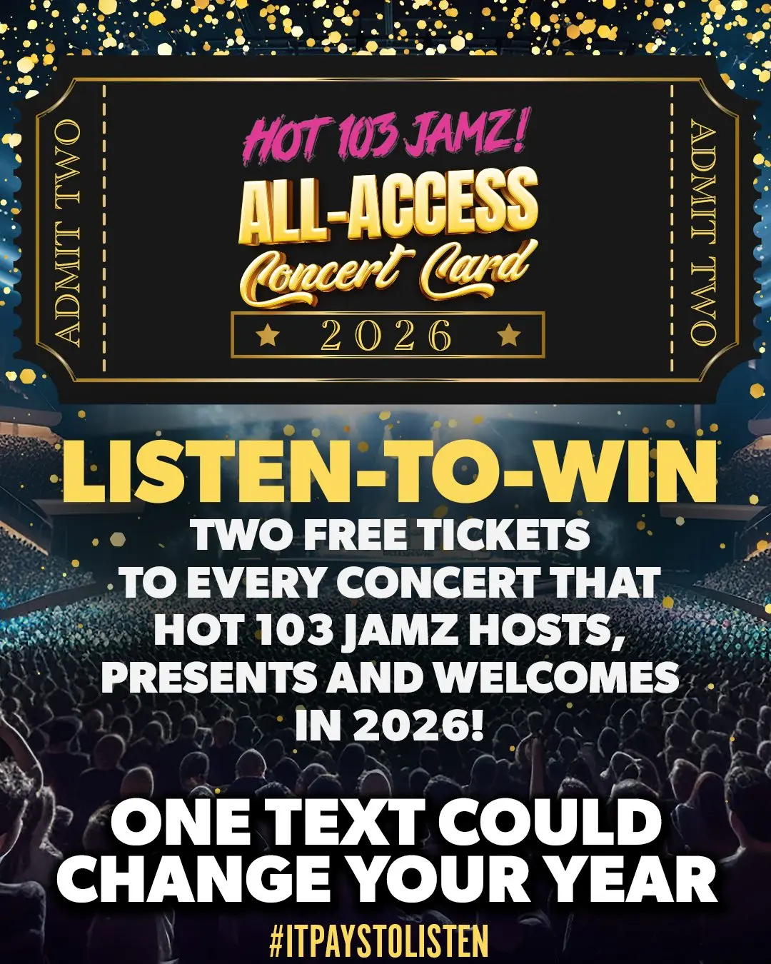 WIN THE HOT 103 JAMZ ALL-ACCESS CONCERT CARD! FREE CONCERT TICKETS ALL YEAR LONG IN 2026! FROM HOT 103 JAMZ…