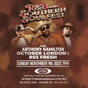 Find out more »R&B & Southern Soul Fest Starring ANTHONY HAMILTON OCTOBER LONDON & 803 FRESH | Nov. 9, 2025