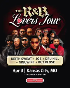 Keith Sweat, Joe, Dru Hill and Ginuwine are bringing The R&B Lovers Tour to T-Mobile Center in Kansas City on April 3, 2026. 🎟️ Pre-sale tickets are NOW AVAILABLE!: Use Code: RBL26 🎟️ Tickets for the general public go on sale Friday, September 12 at 10am. Get tickets at AXS.com
